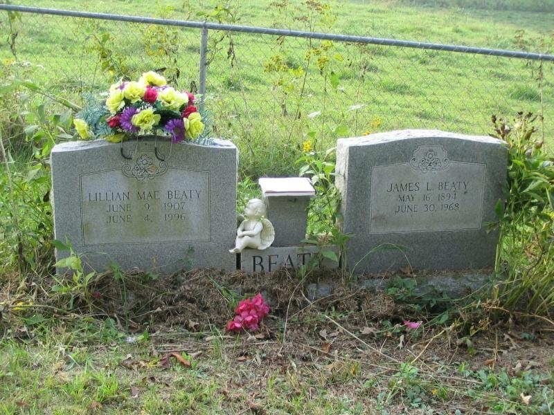 Lillian Mae Young Beaty and Husband James L. Beaty Beaty Cemetery, Fentress County, Tennessee Pictures and annotations were provided by Frank Brown This is a small cemetery (name unknown) along the Old Copley Road in the Poplar Cove area of Fentress County. It is located northeast of Helena and not far from Little Crab. The land is owned by Joe Beaty. The people in the cemetery are his parents. This cemetery is very near the one where the Matthew Wood family is buried. As a matter of fact, Jack Beaty, the son of Joe Beaty owns the land where the Matthew Wood Cemetery is located.