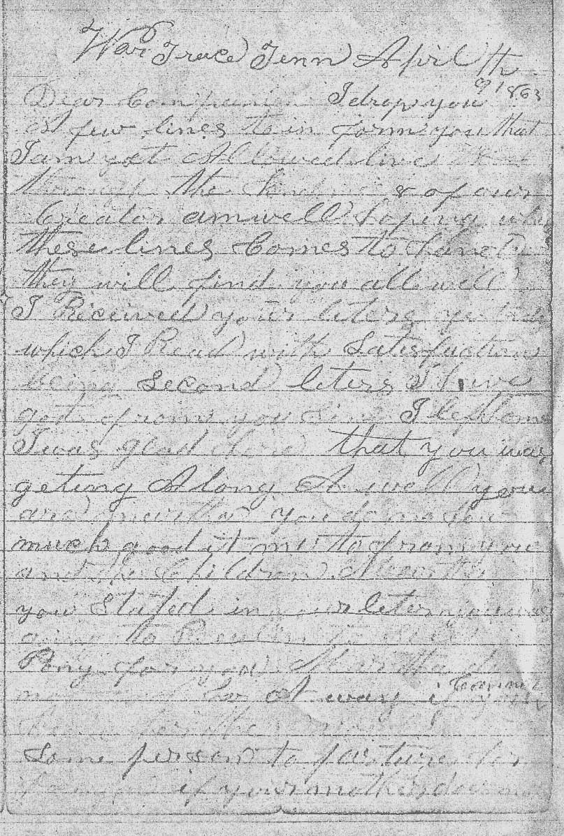W E Butram to Martha Butram / Page 1 / War Trace, TN, April 1863