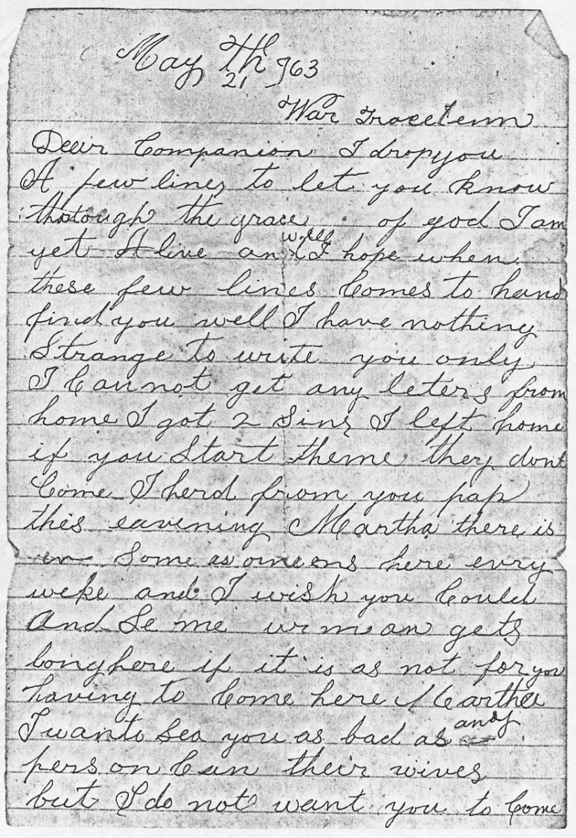 Wm E Butram to Martha Butram / Page 1 / Wartrace, TN, 21 May 1863