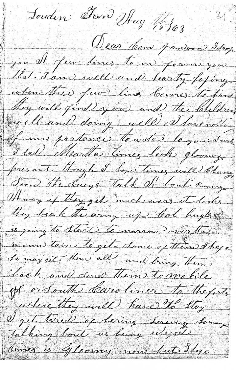 Wm E Butram to Martha Butram / Page 1 / Loudon, TN, 17 Aug 1863