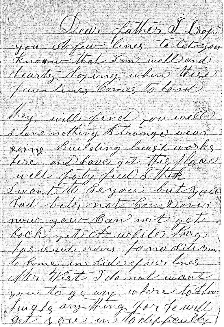I this evening drop you a few lines to let you know that I am well. Your father wrote to me that you had a fine girl. You may name it Tennessee. That will be the best name I can select.