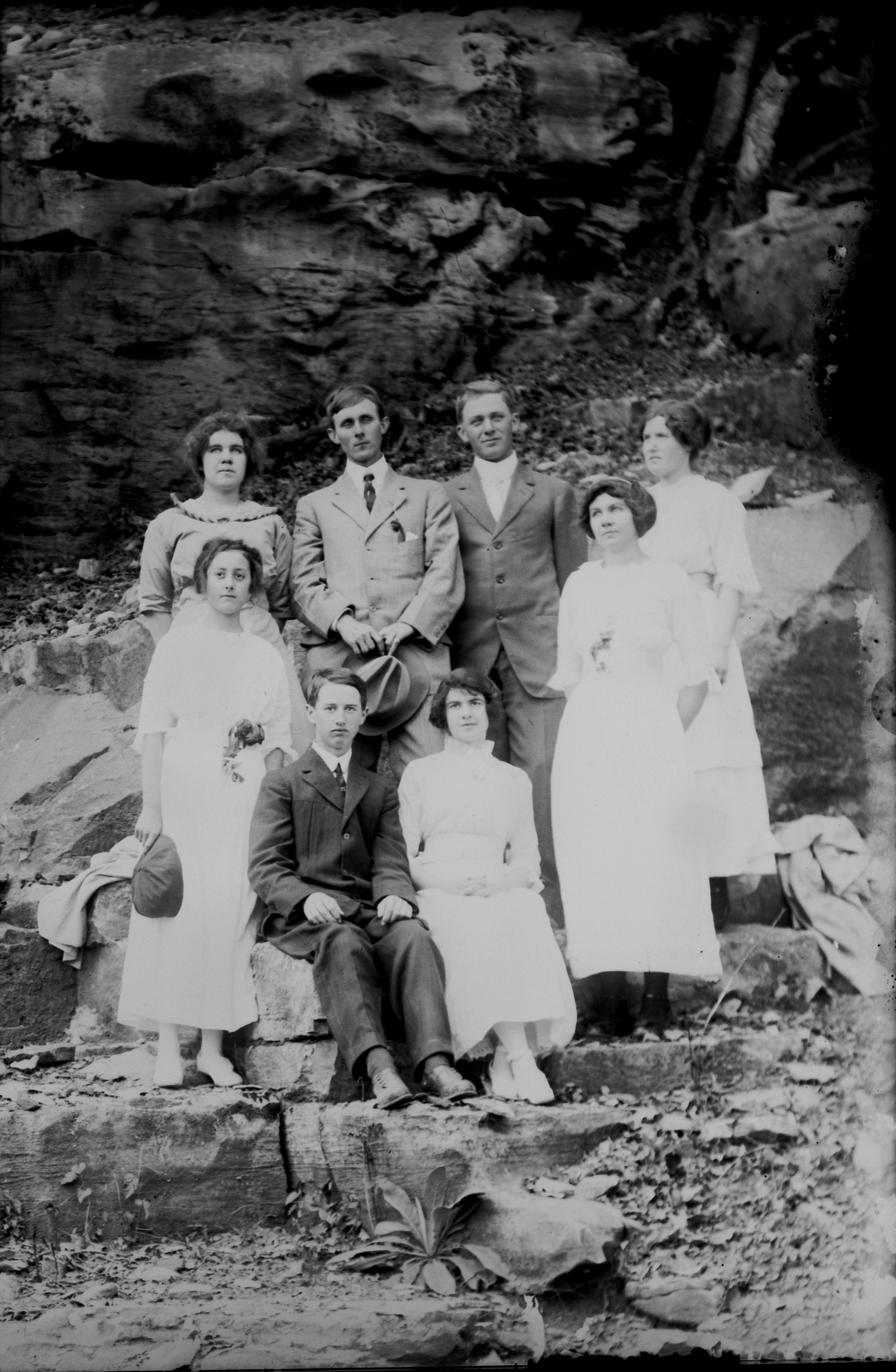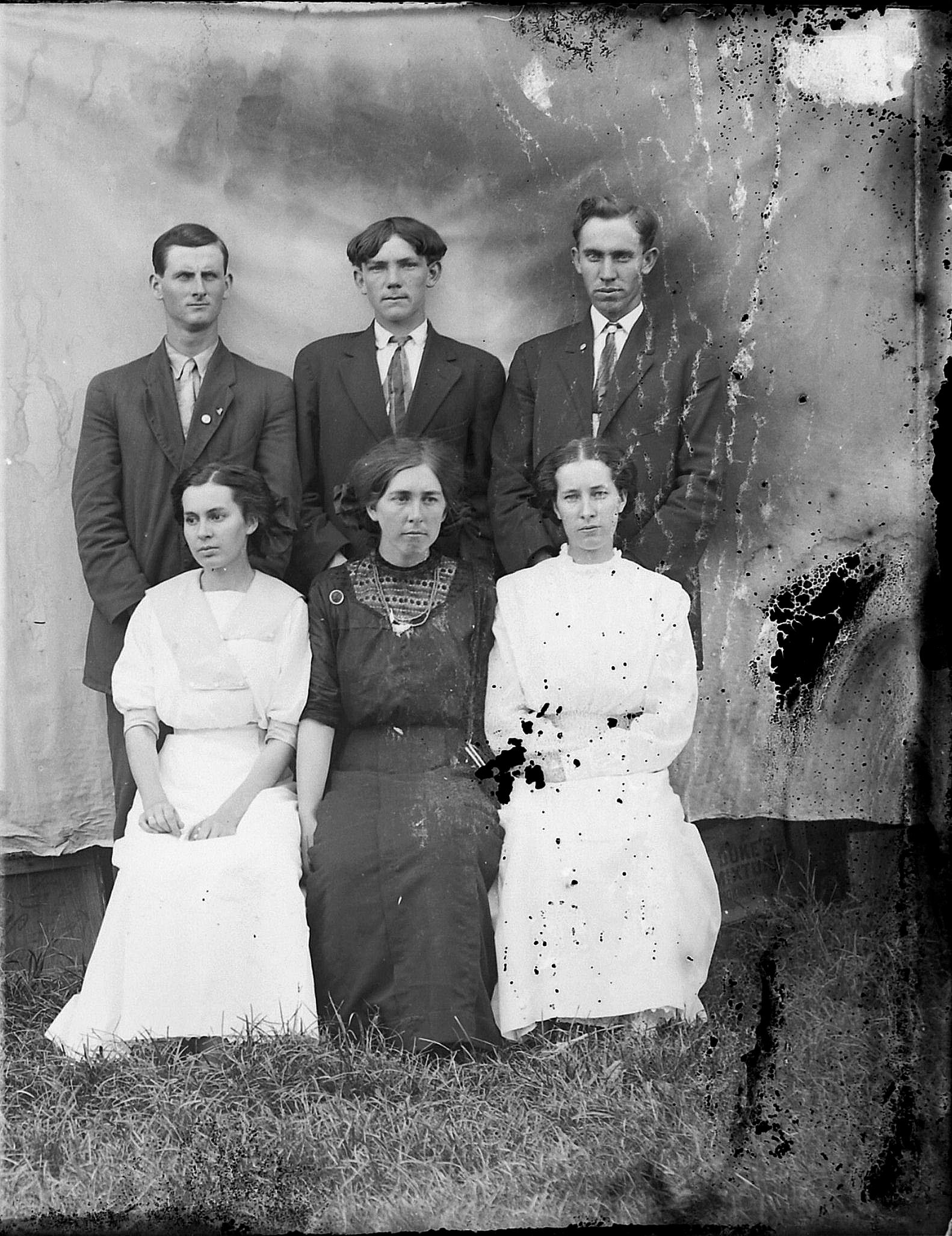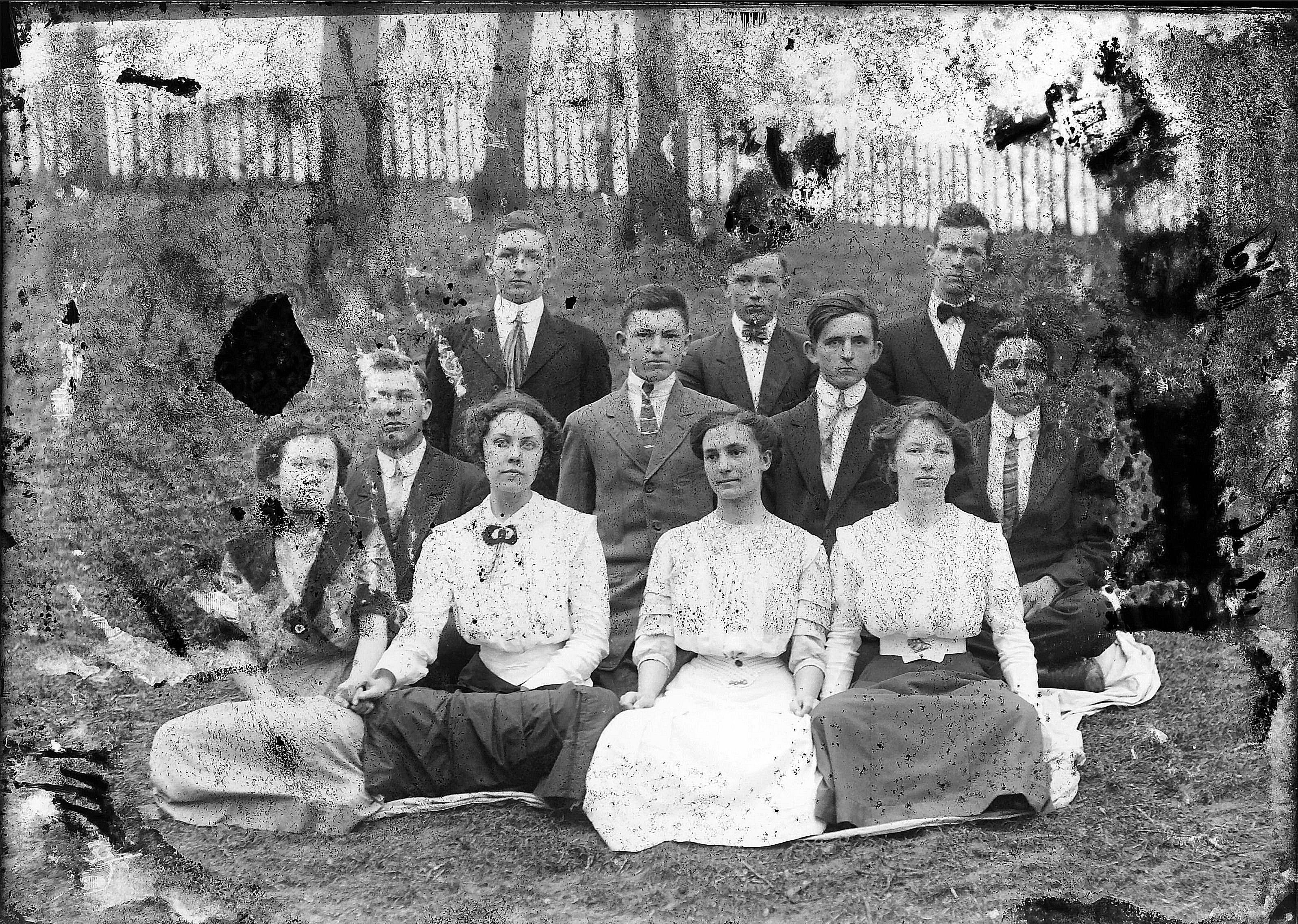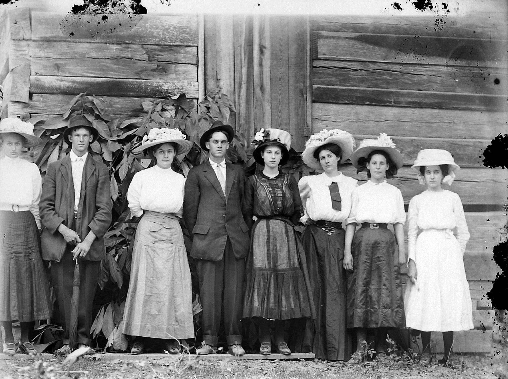 Front row: Sam Wall, Annie Wilson, Charlie Smith, unknown, ____ Pruitt, Madie Smith, Burley Bibb, Pearl Cobb