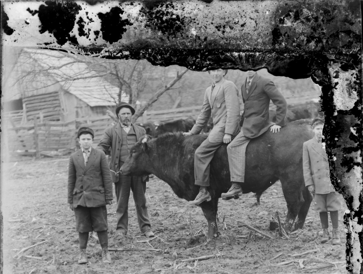 men and boys on bull, George W Wallace III, George W Wallace II, Eli Morgan, Milton Morgan, Wesley Free Wallace