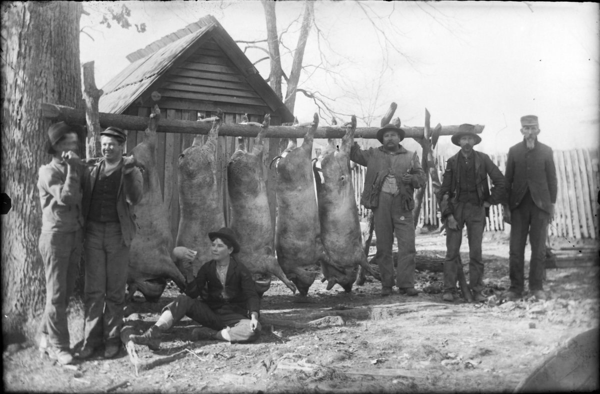 hog killing group – James Feltner, Ewing Feltner, Joseph Feltner, John Feltner, George Newberry, Tom Pollard
