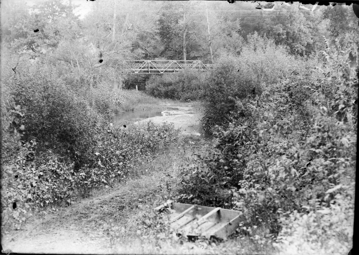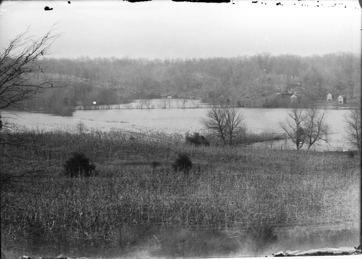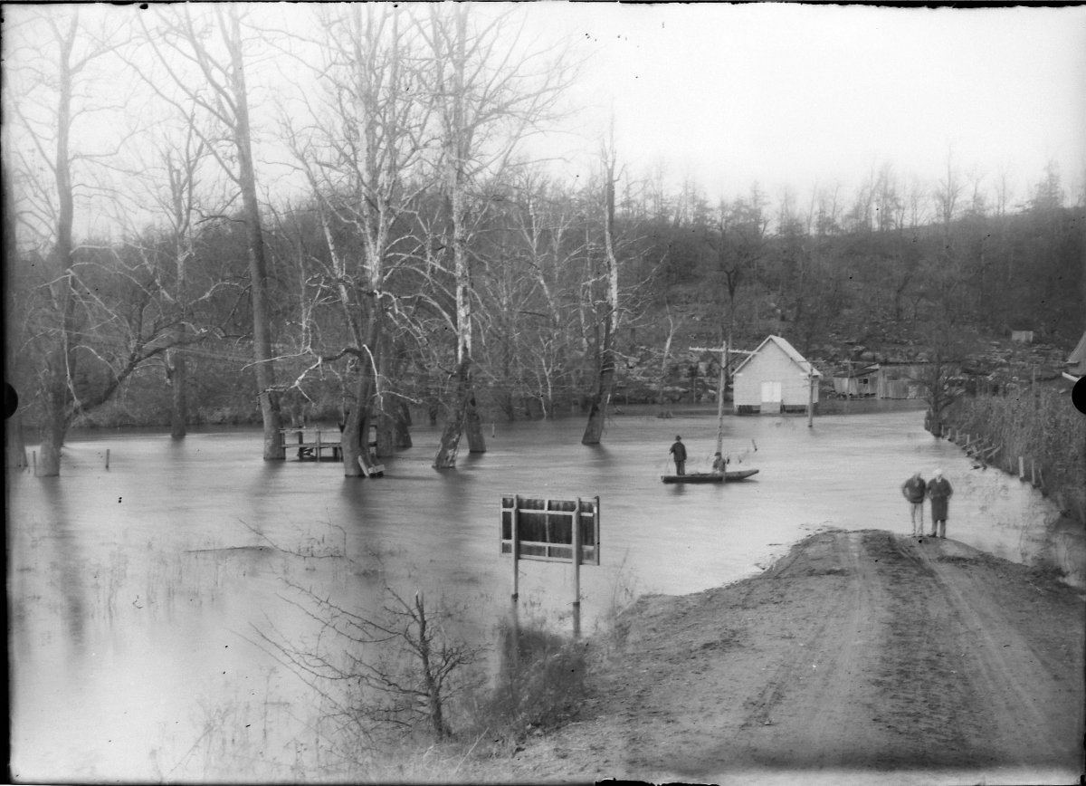 early Saline Creek flood in Bumpus Mills; note old iron bridge that was destroyed in 1928