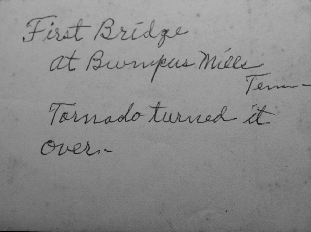 inscription “First Bridge at Bumpus Mills, Tenn. Tornado turned it over”
