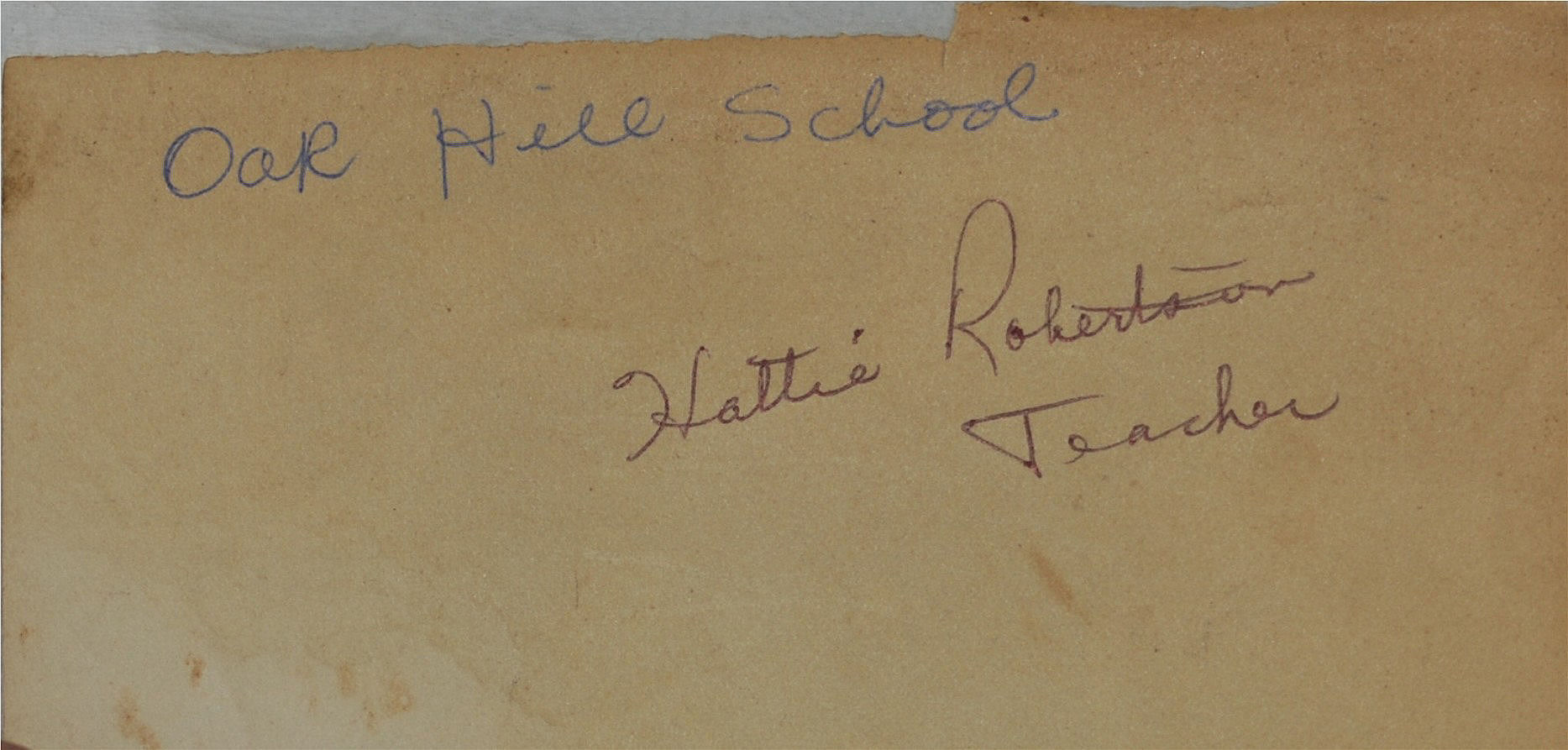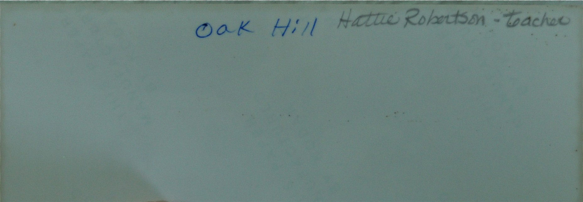 inscription “Oak Hill School Hattie Robertson – teacher”