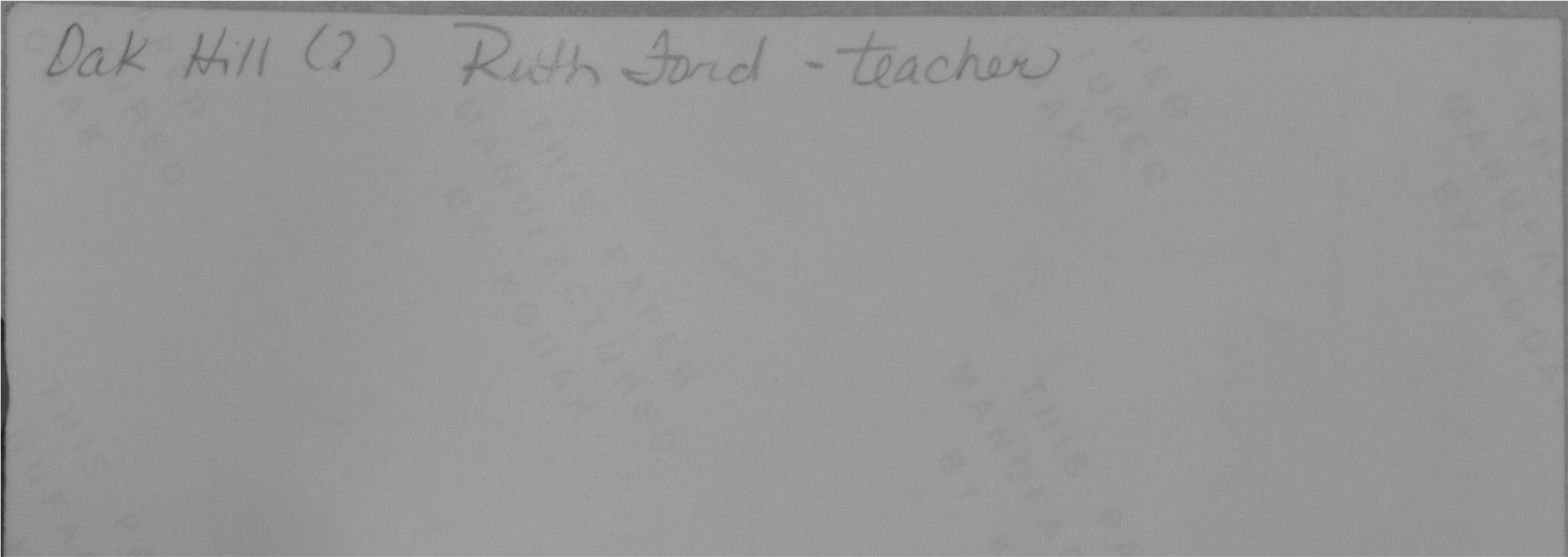 inscription “ Oak Hill (?) Ruth Ford – teacher”
