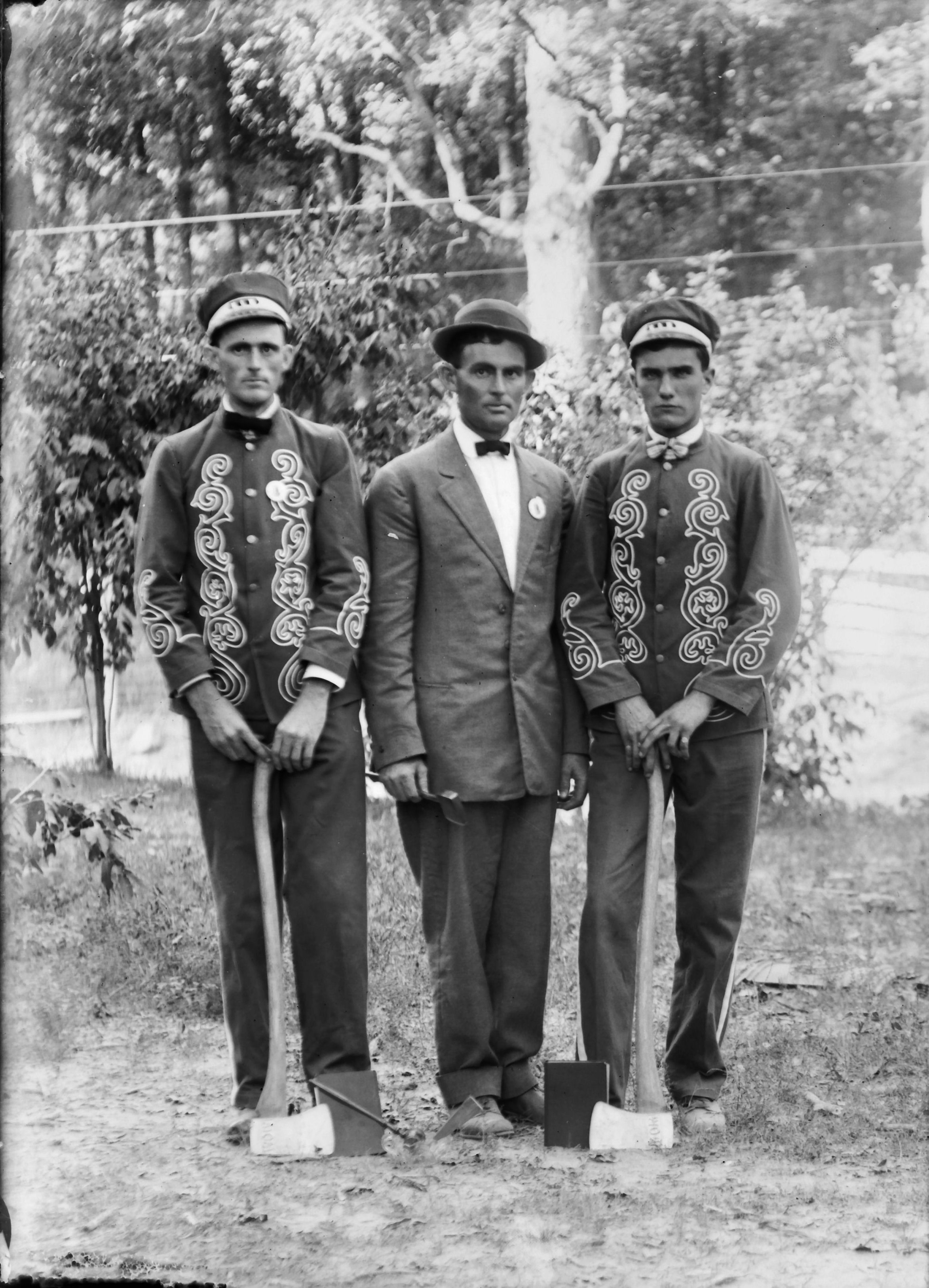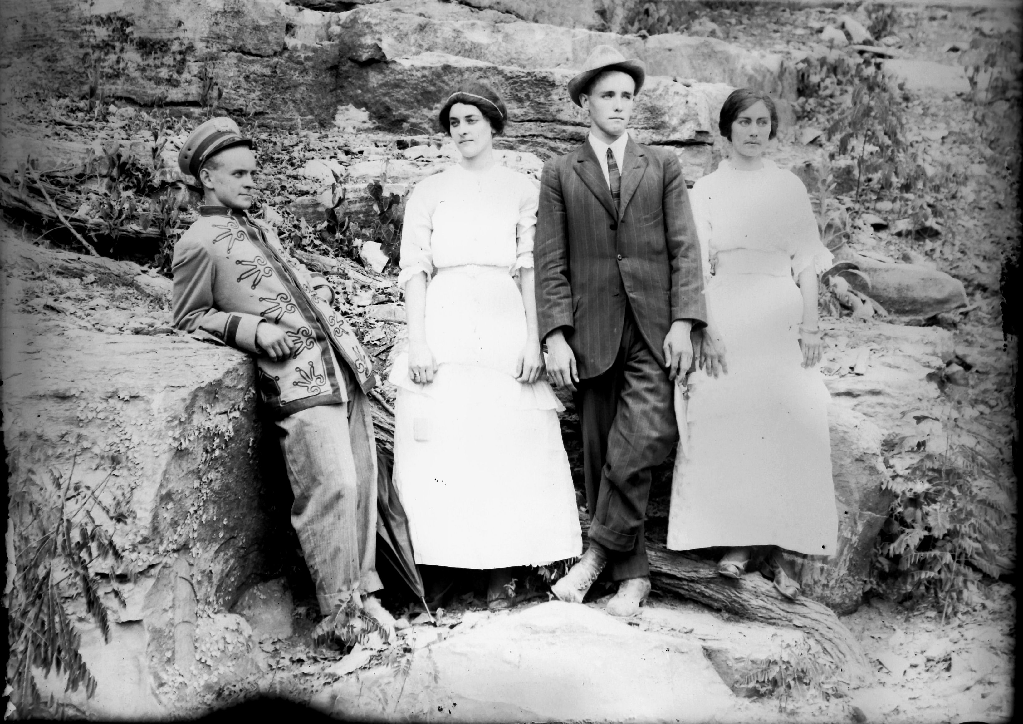 front row – Wayne Clark, Elmer Holland, Charles Hargis, Joe Williams, Carlon Clark, James Edward Pugh, Stephen Lionel Hargis, Jessie Ezell, circa 1913, Big Rock