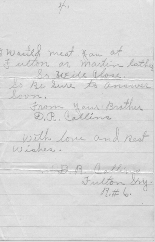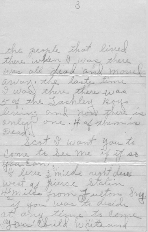 I live 3 miles right due west of Pierce Station 4 miles from Fulton KY if you was to deside at any time to come you could write and I would meat you at Fulton or Martin Lather.