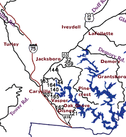 These cemeteries were found and identified by Mildred Collins Wasser, Sheila Fuhr, and Lou Evans. The Campbell County TNGenWeb Project wishes to thank Mildred, Sheila, and Lou for the time they spent researching the location of the cemeteries.