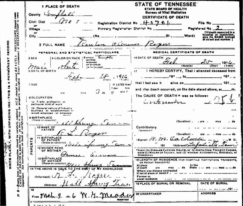 The Campbell County TNGenWeb Project makes no claims or estimates of the validity of the information submitted and reminds you that each new piece of information found should not be taken at face value, but should be researched and proved or disproved by weight of evidence.