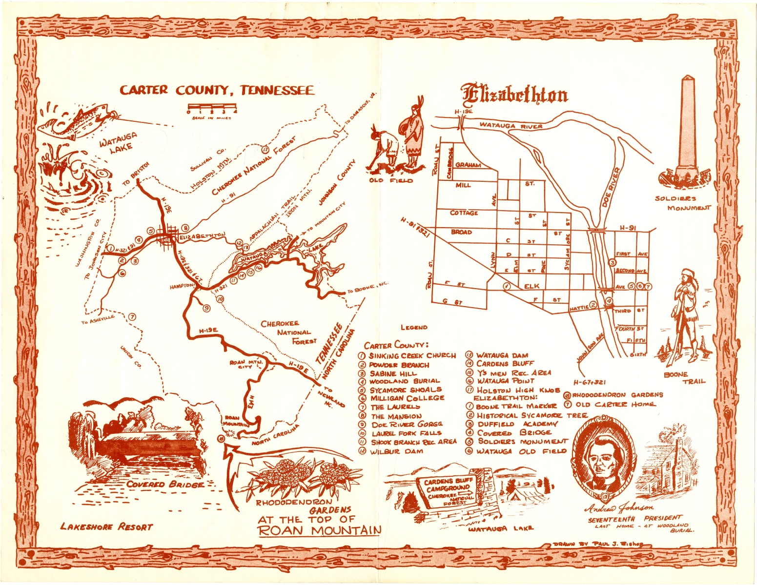 Carter County & Elizabethton Map by Paul Bishop, undated