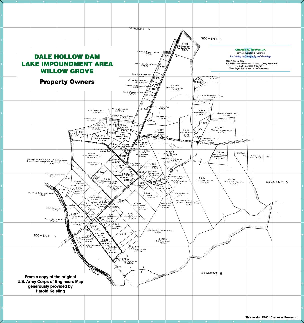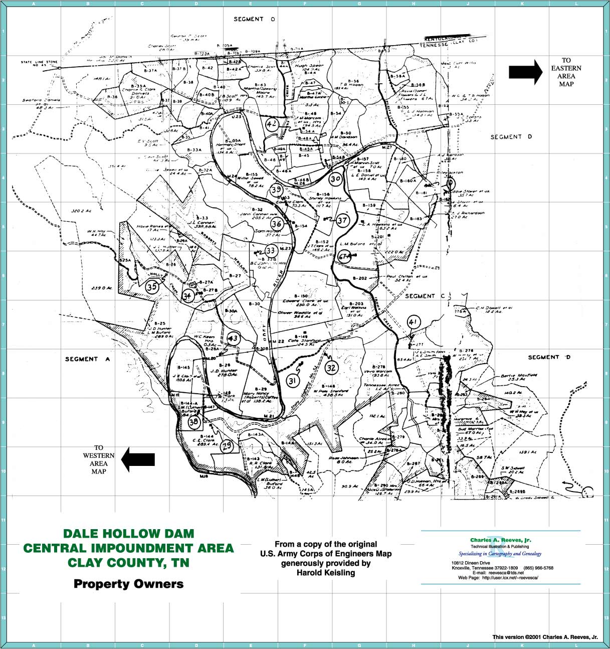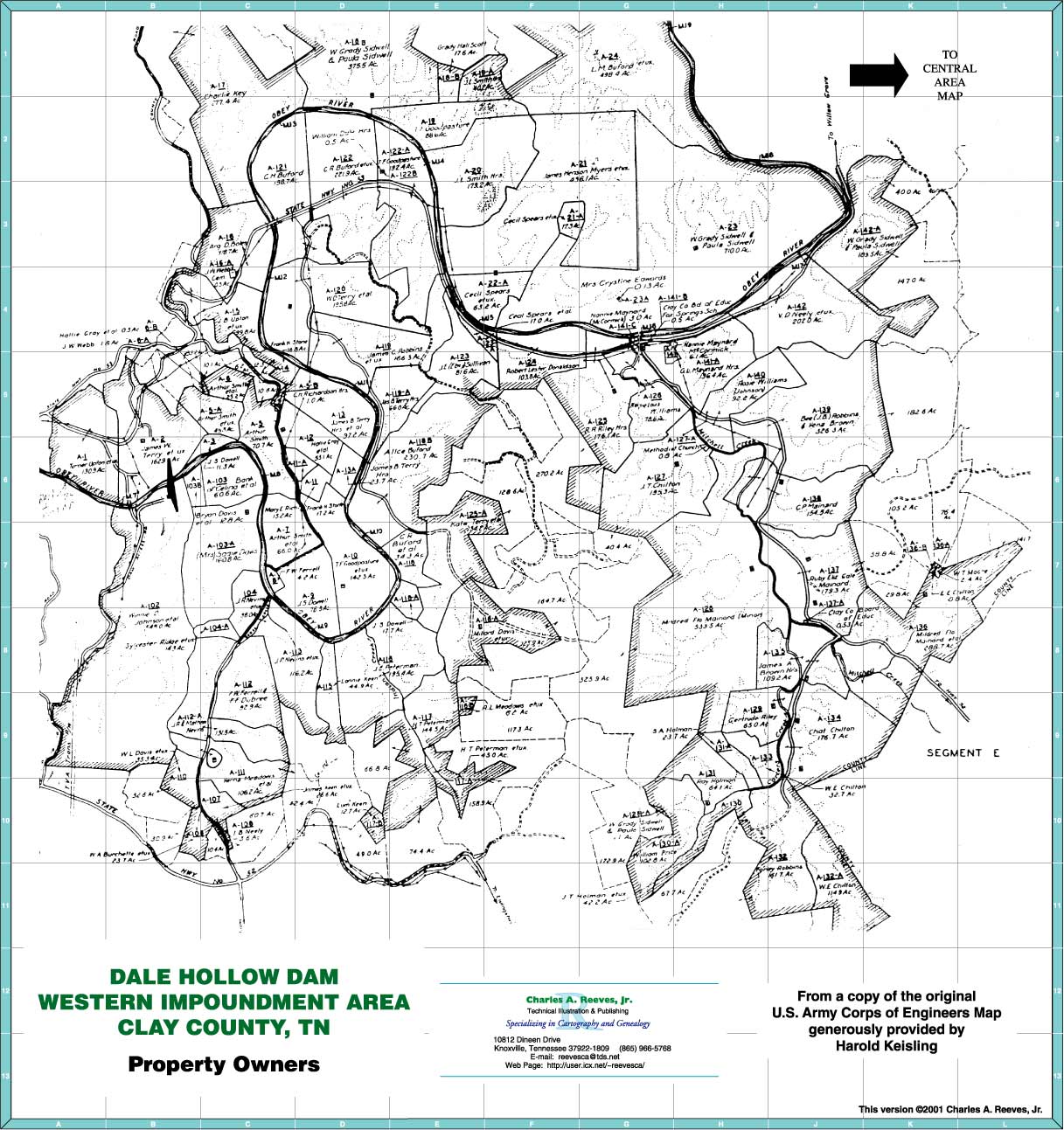 Harold Keisling has generously provided scans of the original U.S. Army Corps of Engineers map(s) showing the properties that were inundated by Dale Hollow Lake after the construction of the dam. Images of these maps, along with complete indexes, are available on this site as listed below.