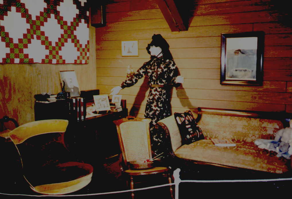 In the parlor can be seen costumes and furnishings from days gone by, including the accordian seen in this photograph.