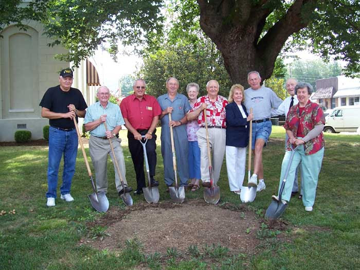 This picture, of the wonderful people who worked on this project, is from the groundbreaking, taken on July 11, 2008. One key person, Flint Gregory, is not in the photo. From left to right are: John Gibbons, Bobby Cates (Cmte Chairman), Ed Wilson, Davie Lee Riddick, Annette Riddick, Ira Burrow, Maude Ferguson, Steve Emison, Fred Ferguson, & Wanda Richardson.
