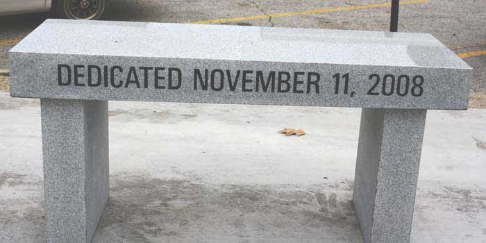 The committee reviewed four proposals and unanimously selected Greenfield Monuments to design, engrave, and install the granite tablets. The Memorial consists of one black center stone tablet, one bench dedicated to the memory of Jeanne Mathis, and 15 additional tablets that reflect the names of all county service men and women who have served from World War I to present day. The black tablet displays the 82 local names who sacrificed all for their country during service in World War I, World War II, Korea, and Vietnam. The fifteen tablets reflect 4,962 names of local servicemen and women who have served our country on active duty. Each monument sits on a double granite base. The entire monument is wheelchair accessible.
