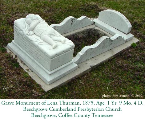 Childrens Monuments Grave Monument of Lena Thurman, 1875, Age, 1 Yr. 9 Mo. 4 D. Beechgrove Cumberland Presbyterian Church, Beechgrove, Coffee County Tennessee