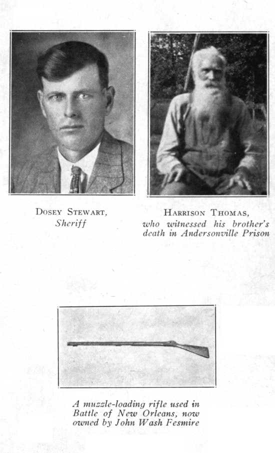 - Photographs, Dorsey Stewart, Sheriff; Harrison Thomas, who witnessed his brother's death in Andersonville Prison; A muzzle-loading rifle used in the Battle of New Orleans, now owned by John Wash Fesmire