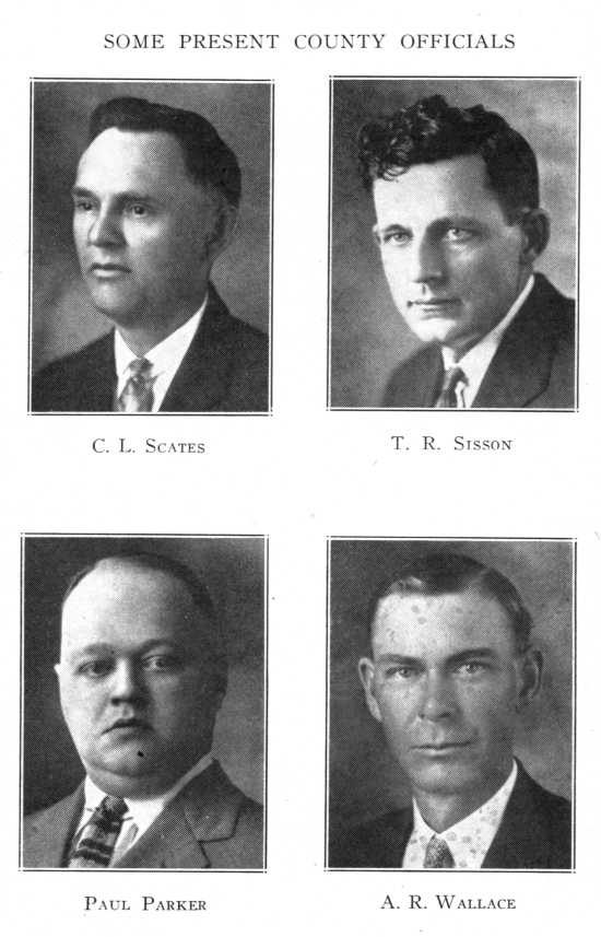 - Photographs, Some Present County Officials: C. L. Scates; T. R. Sisson; Paul Parker; A. R. Wallace