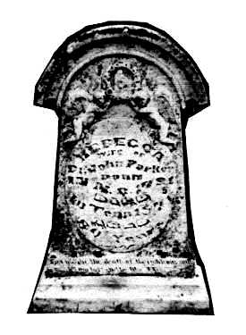 On pages 74-75 of the above volume it was reported in the settling of JOHN PARKER's estate that $200 had been spent on tombstones. Pictured below is the ornate tombstone of the Reverend JOHN PARKER, 1784-1864, with its "fancy" footstone. Later an ornate tombstone was erected over the grave of Parker's widow, Rebecca and it is shown below also.