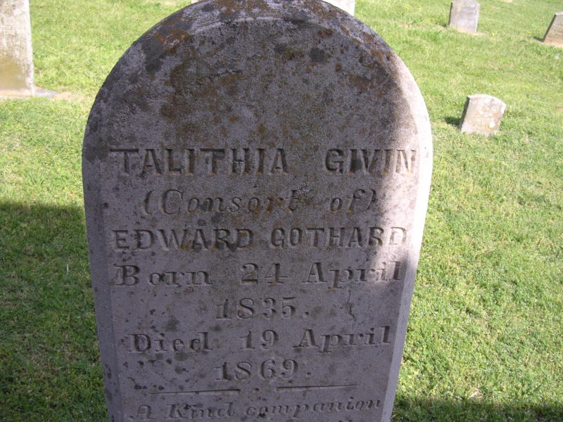 | Givin | Talithia | 21 Apr 1835 | 19 Apr 1869 | Consort of Edward Gothard | |