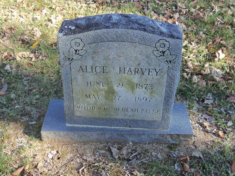 John W. Robinson is buried here. Alice married Isaac “Ike” Harvey