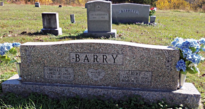married Albert S Barry on December 28, 1919 in DeKalb Co, TN.