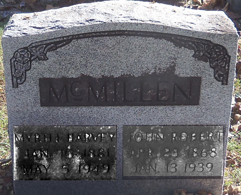 John Robert McMillen Apr. 23 1868-Jan. 13 1939 [Jan 11 1940 correct]