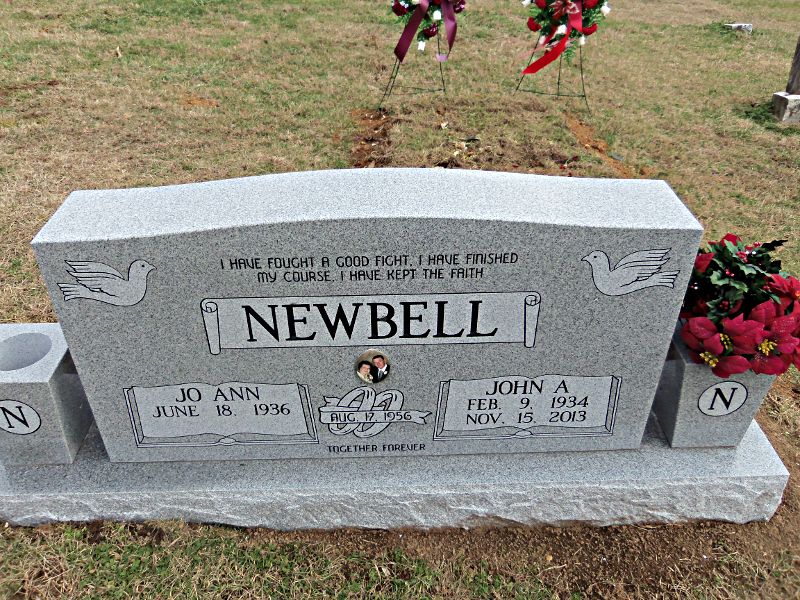 John A. Newbell was the son of W. H. Newbell and Etta Bradford. He married Jo Ann Barry on August 17, 1956. He is buried to the right of his son, Kerry Allen Newbell.