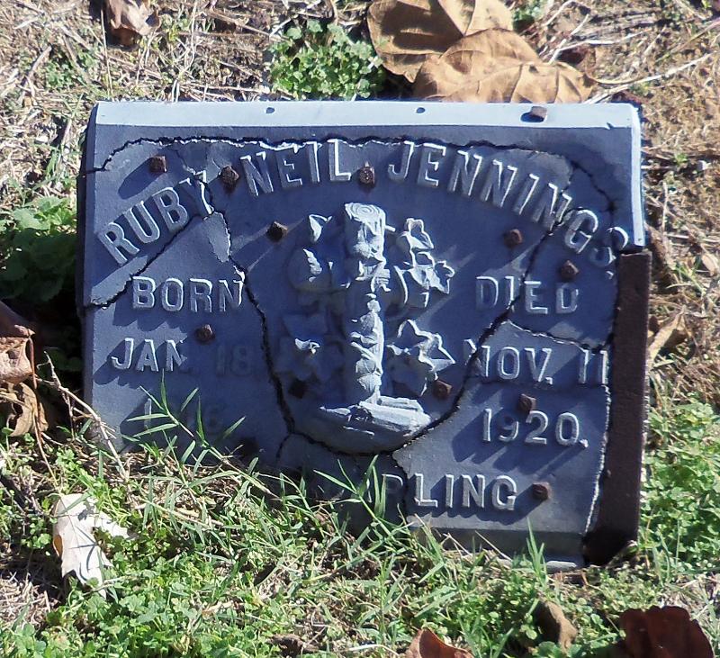 Ruby Neil Jennings was the daughter of Claude and Jewell Gibbs Jennings. Her parents are buried next to her.