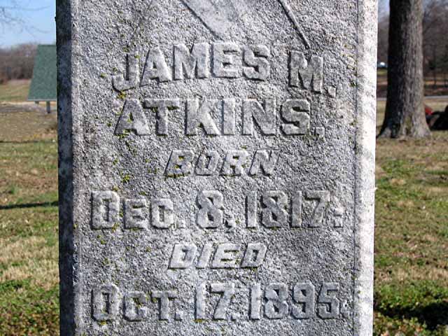 | Atkins | James M. | Dec 8 1817 | Oct 17 1895 | headstone photo 1, photo 2 | s/s as Mary E. Atkins |