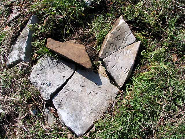 | Chapman | -------- | 1889 | ---- | headstone photo 1, photo 2 | d/o ? & B. Chapman [broken stone] |