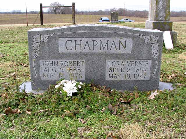 | Chapman | John Robert | Aug 9 1888 | Nov 14 1976 | headstone | s/s as Lora Vernie Chapman |