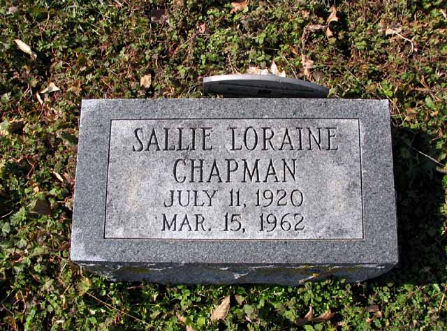 | Chapman | Sally Loraine | Jul 11 1920 | Mar 15 1962 | headstone | |
