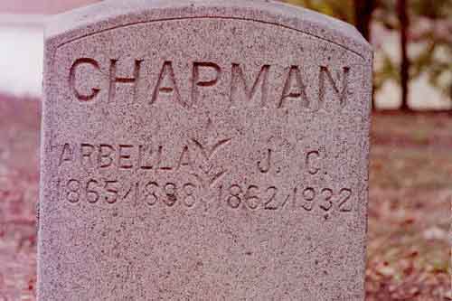 | Chapman | Arbella | 1865 | 1898 | headstone photo 1, photo 2 | s/s as J. C. Chapman |