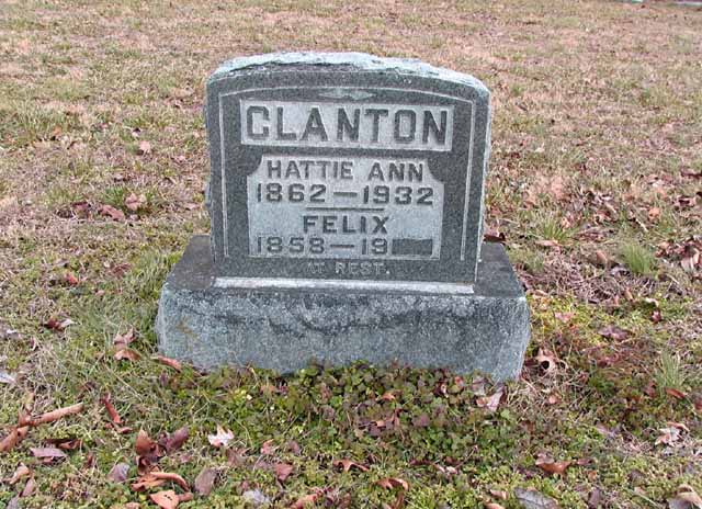 | Clanton | Hattie Ann | 1862 | 1932 | headstone | s/s as Felix Clanton |