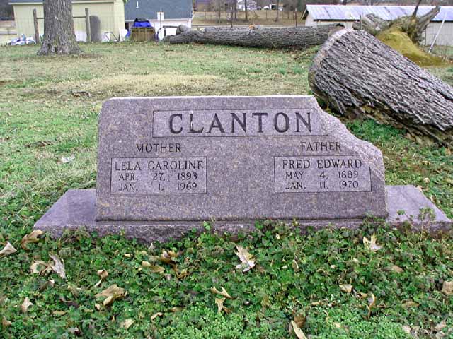 | Clanton | Fred Edward | May 4 1889 | Jan 11 1970 | headstone | Father; s/s as Lela Caroline Clanton |