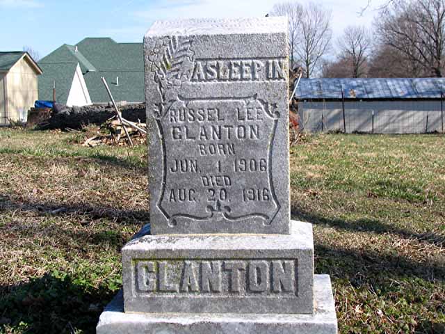| Clanton | Russell Lee | Jun 1 1906 | Aug 20 1916 | headstone | |