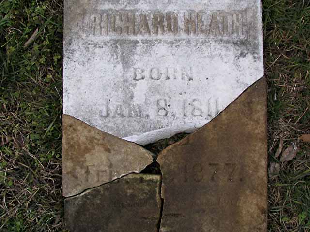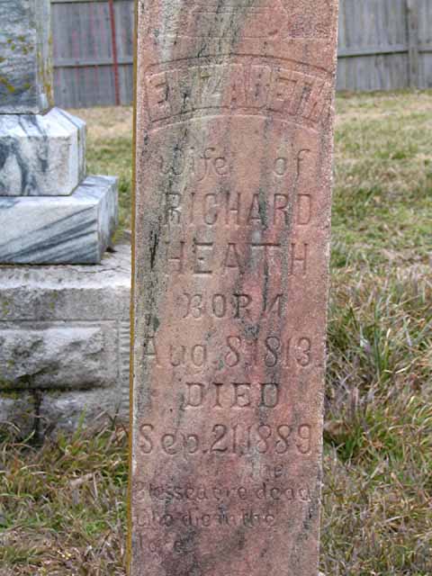 | Heath | Richard | Jan 8 1811 | Feb 15 1877 | headstone photo 1, photo 2 | h/o Elizabeth Heath |