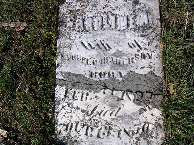 | Henderson | Caroline A. | Feb 11 1827 | Oct 13 1850 | headstone photo 1, photo 2 | w/o Samuel Henderson |
