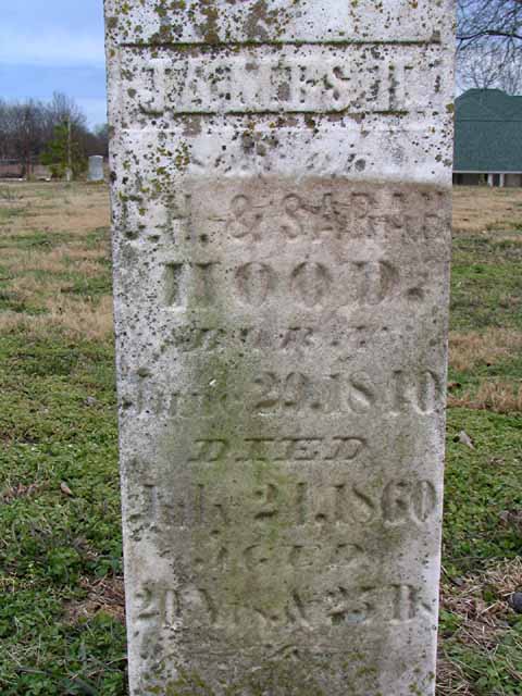 | Hood | James H. | Jun 29 1840 | Jul 24 1860 | headstone photo 1, photo 2 | s/o C. H. & Sarah Hood |