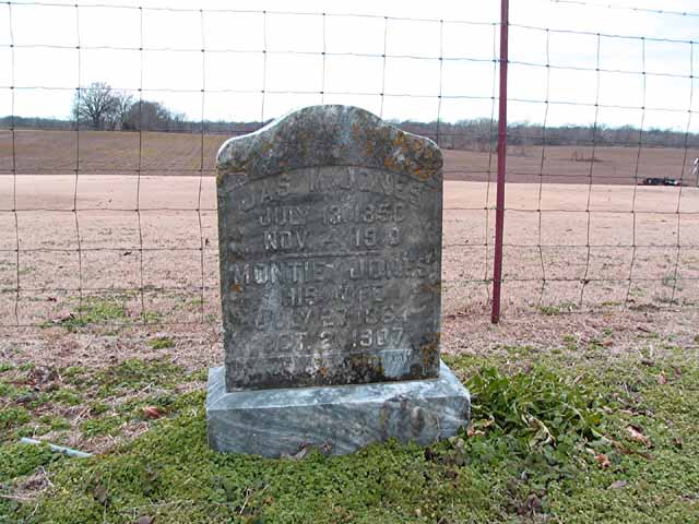 | Jones | Montie | Jul 27 1864 | Oct 21 1907 | headstone | s/s as James M. Jones |