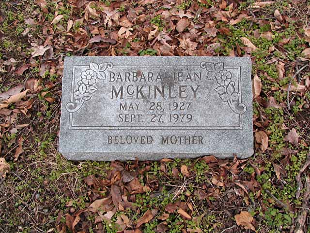 | McKinley | Barbara Jean | May 28 1927 | Sep 27 1979 | headstone | Beloved Mother |