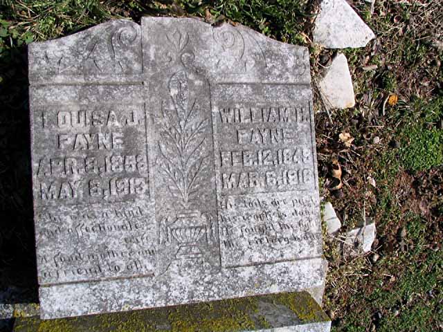 | Payne | William H. | Feb 12 1849 | Mar 6 1916 | headstone | s/s as Louisa J. Payne |