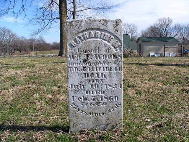 | Woods | Catharine M. Doak | Jul 10 1834 | Feb 5 1860 | headstone | d/o T. D. & Elizabeth Doak; Consort of William T. Woods |