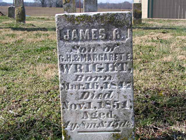 | Wright | James R. | Mar 16 1847 | Nov 1 1851 | headstone | s/o G. H. & Margaret E. Wright |