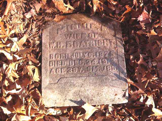 | Boatright | Minnie E. | Jul 8 1876 | December 24 1913 | headstone | w/o W. H. Boatright |