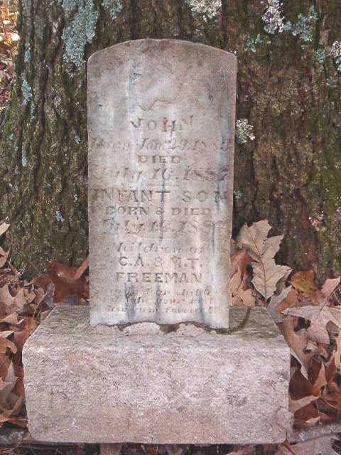 | Freeman | Infant Son | July 16 1887 | Jul 16 1887 | headstone | s/s as John Freeman, s/o C. A. & M. T. Freeman |