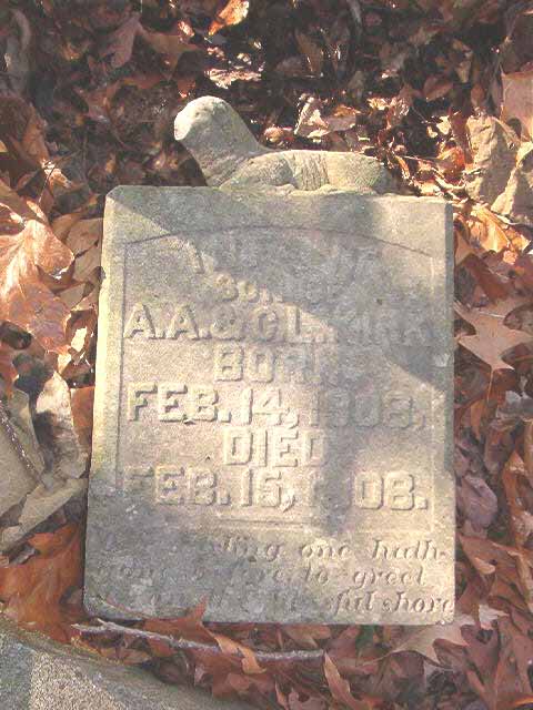 | Stewart | James Horest | Dec 26 1898 | Dec 27 1898 | headstone photo 1, photo 2 | s/o J. A. & E. L. Stewart |